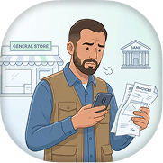 He pays bills at the branch due to a lack of access to digital business banking tools.